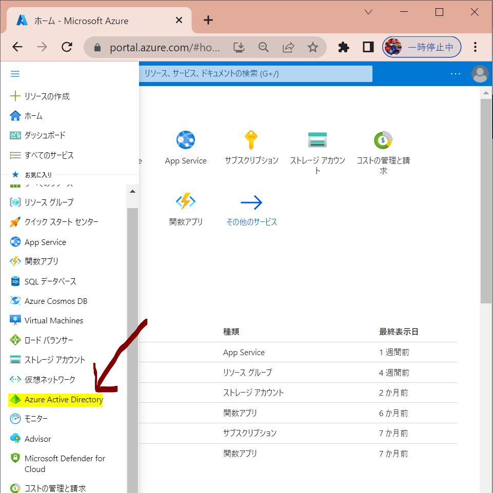・①Azureポータルの左メニューから「Azure Active Directory」を選択します。