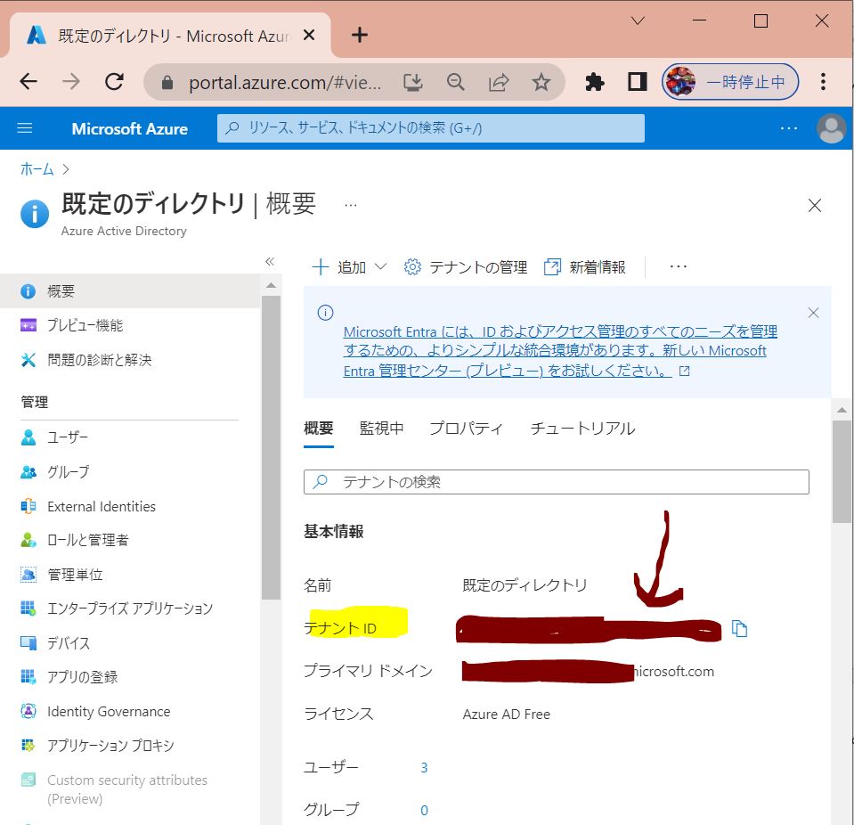 →※マスキングしているため見えませんが、(図133)のTenant IDとDirectory IDは一致しています。