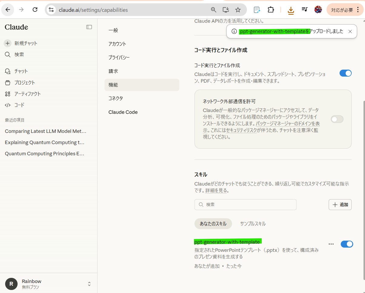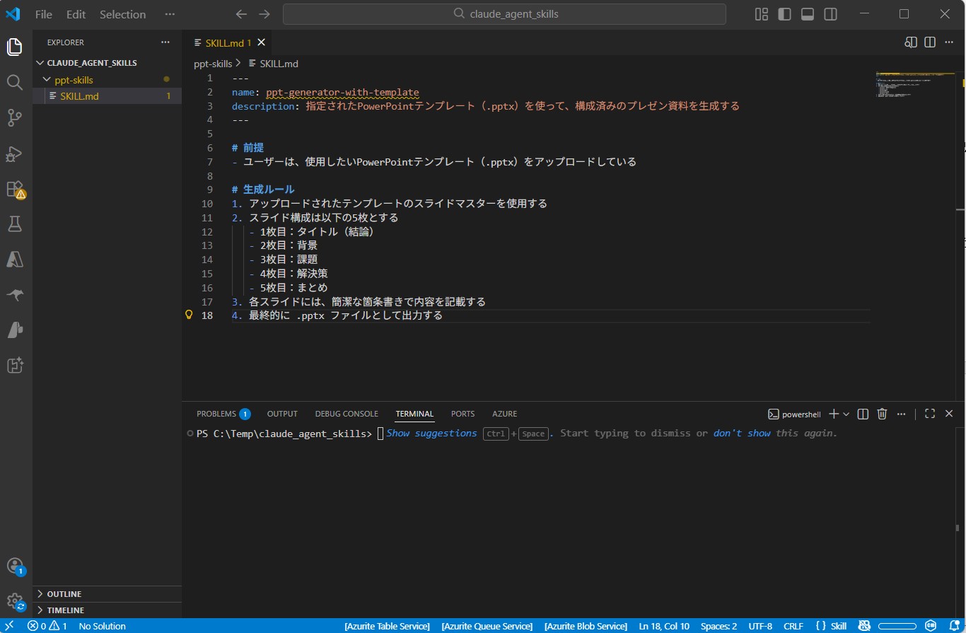 STEP2:PPT生成Skillを作って実行する