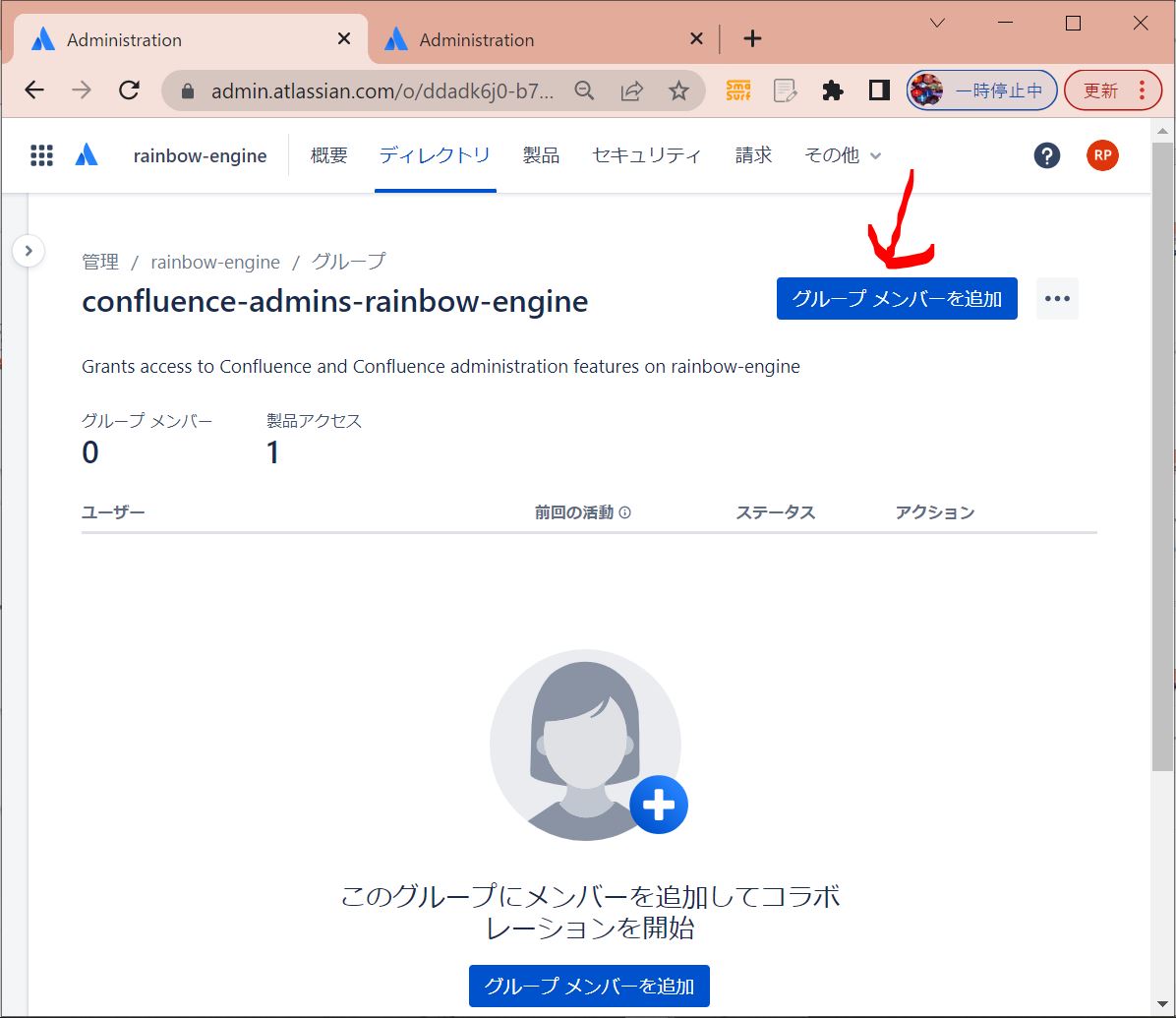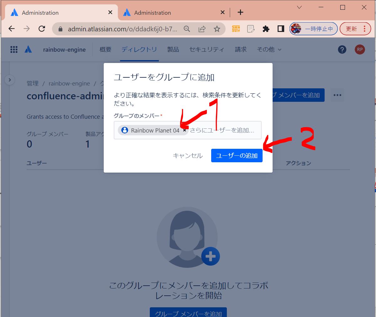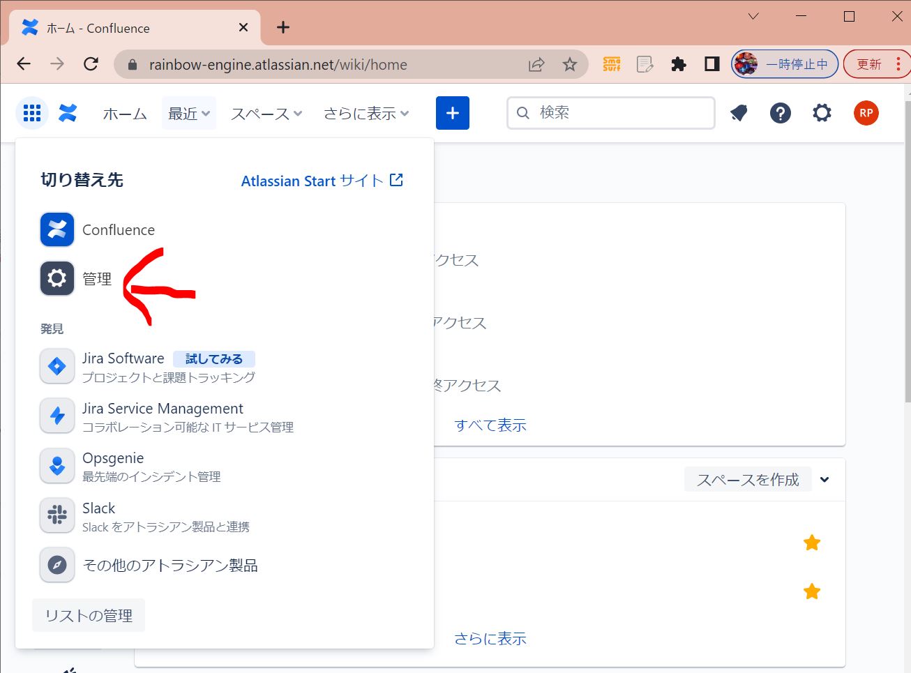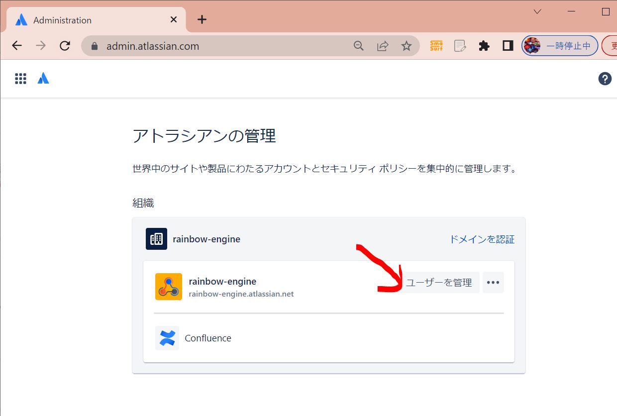・②「xxxxxx.atlassian.net」の「ユーザーを管理」を選択