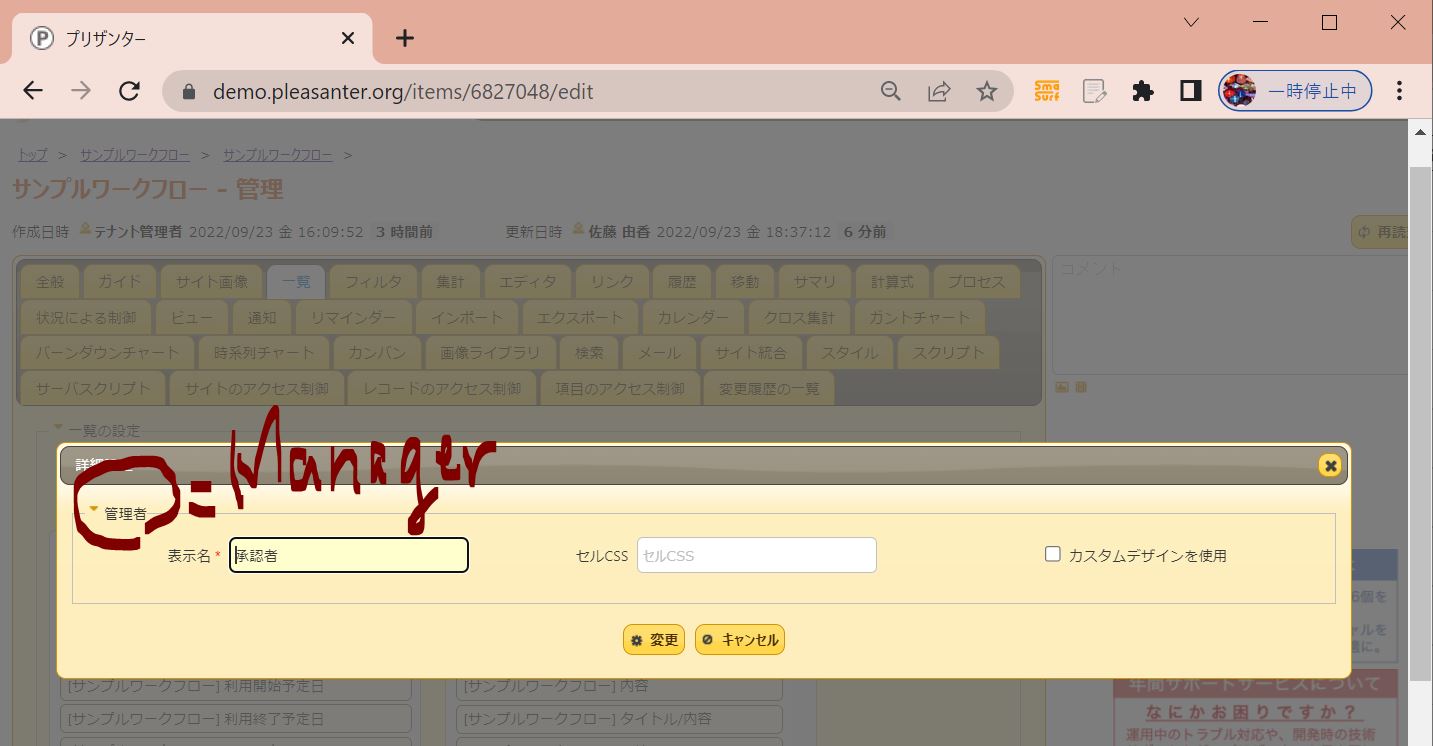 (例)「承認者」はデフォルトでは「管理者」(システム的には「Manager」)である