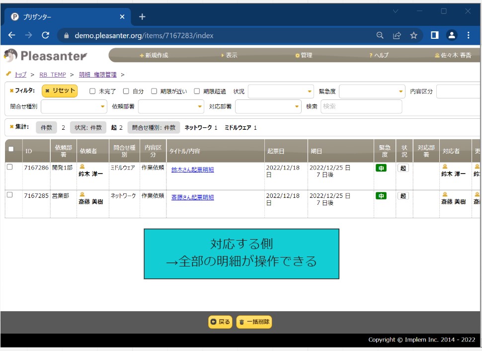 ・【依頼する側】:全ユーザーに起票&更新できる権限(誰でも問合せできる)