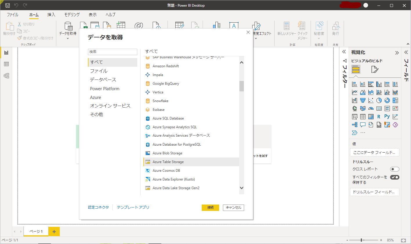 ・Azureのリソースにアクセス可能なアカウントでPower BI Desktopにログイン済み