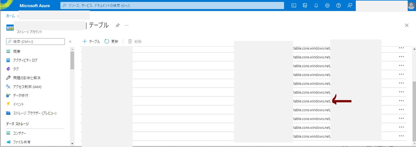 ・データを取得で「Azure Table Storage」を選択