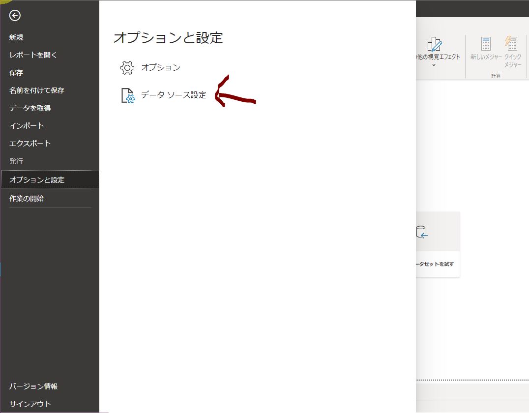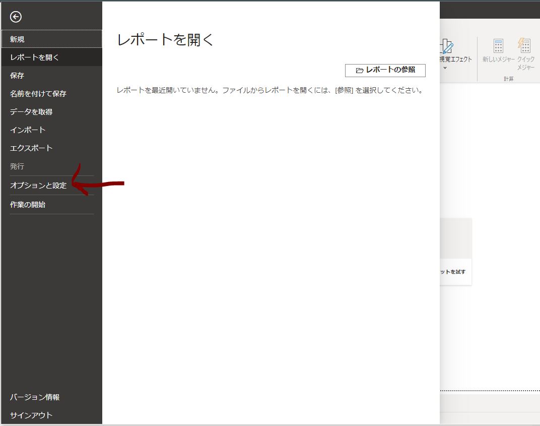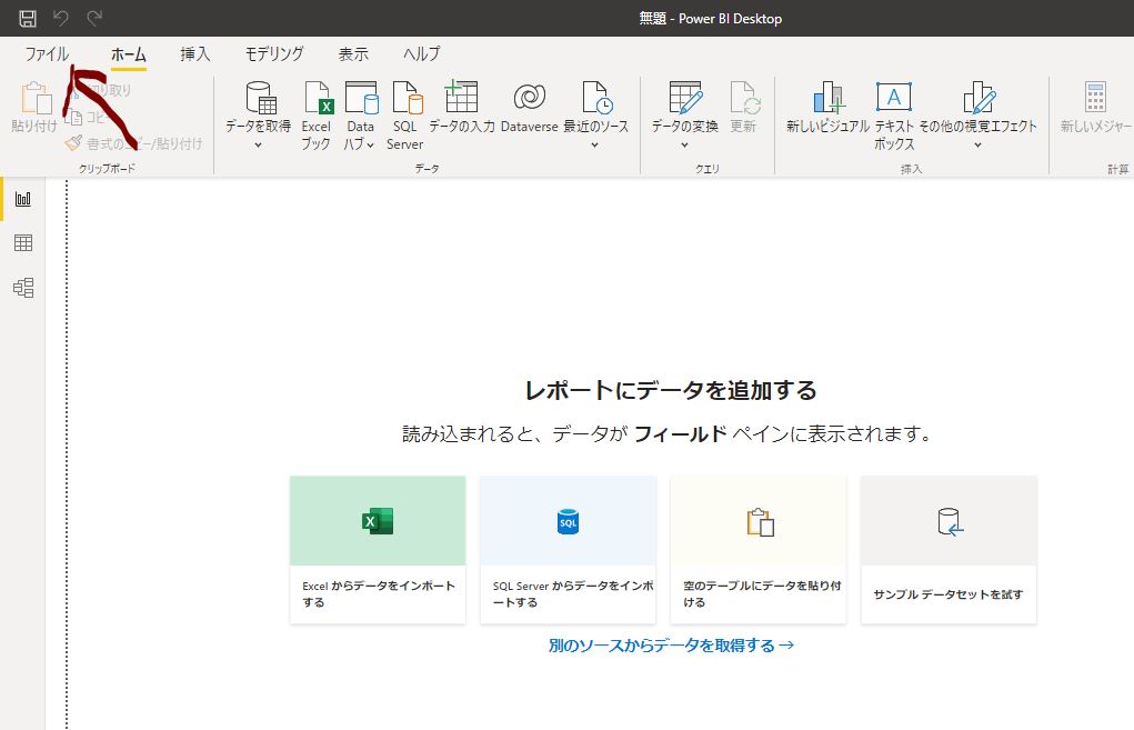 ① Power BI Desktopで「ファイル」を選択