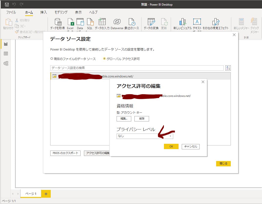 Power BI Desktopの「プライバシーレベル」の設定が不足しているために発生します。