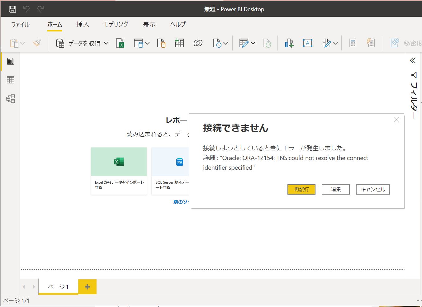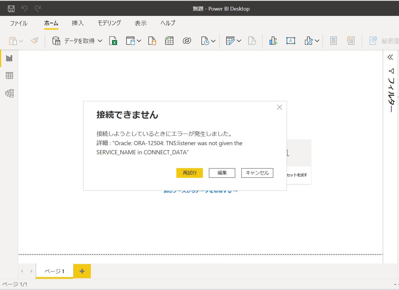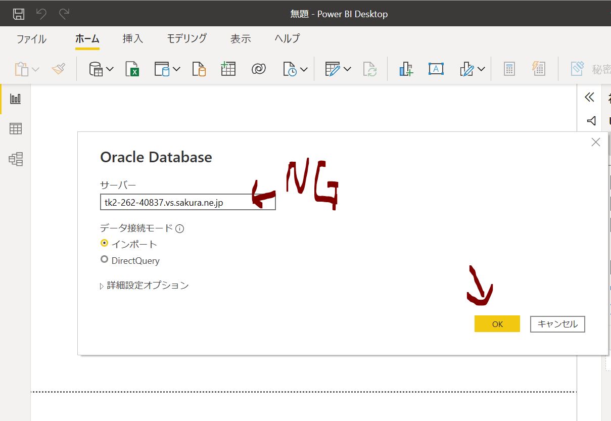 Power BI Desktopで Oracle ORA-12504 エラーが出た時の対処方法
