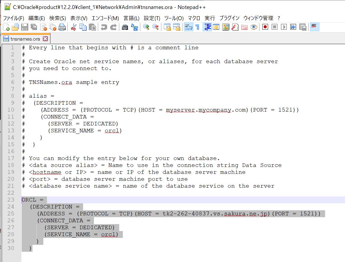 (ADDRESS = (PROTOCOL = TCP)(HOST = tk2-262-40837.vs.sakura.ne.jp)(PORT = 1521))