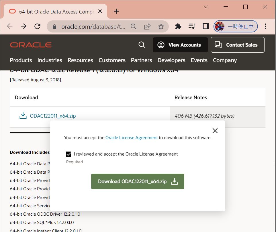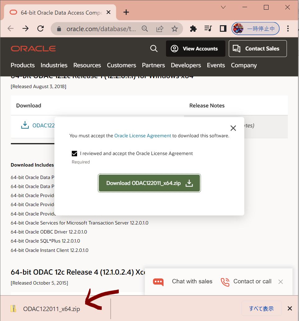 ・②ご自身のOracle DBに合ったバージョンをダウンロード