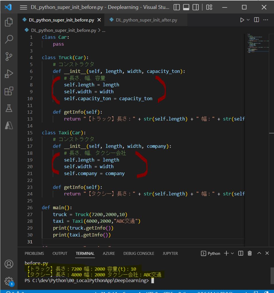 ⇒lengthやweightの初期化を複数回記述してしまっている(Taxi、Truckで2回)