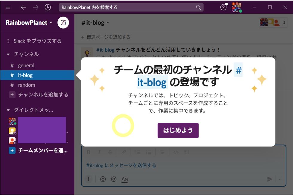 ここでは、Slackの超基本的な使い方について、一部をご紹介します。