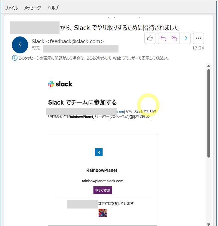 招待された方は、メールで招待通知を受け取るので、参加処理をします。