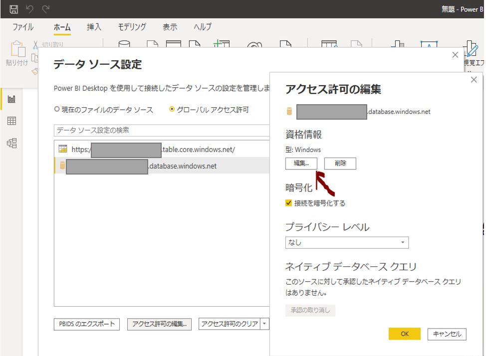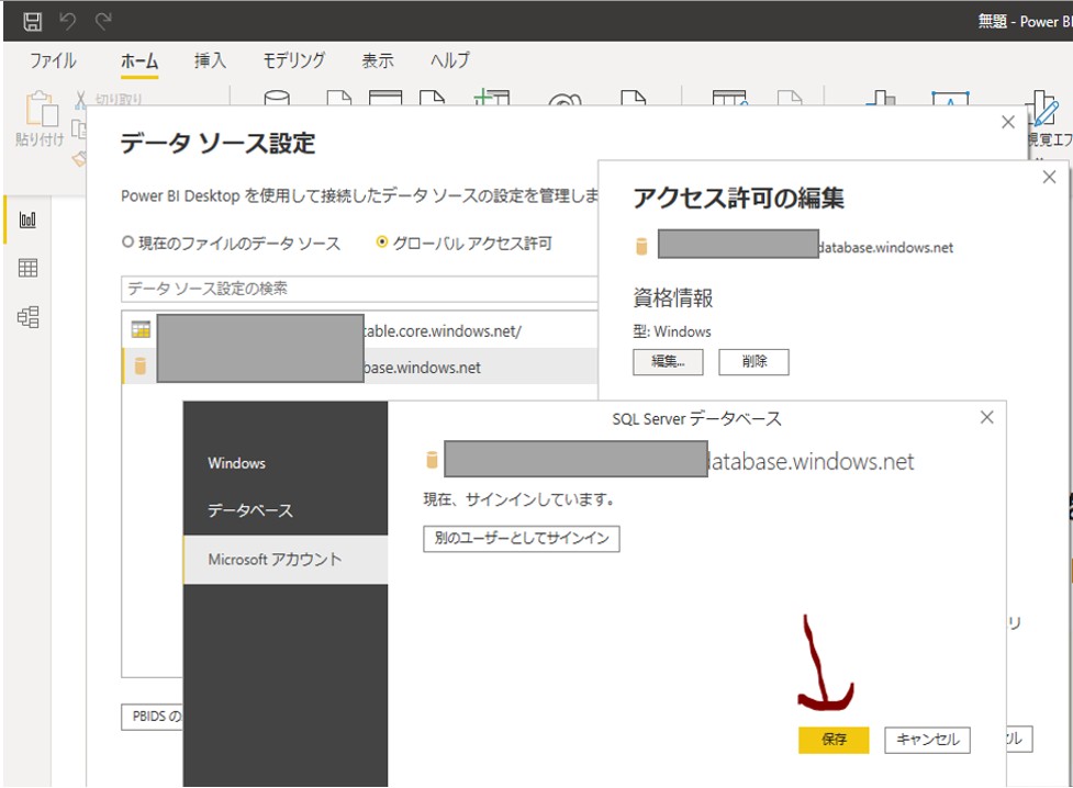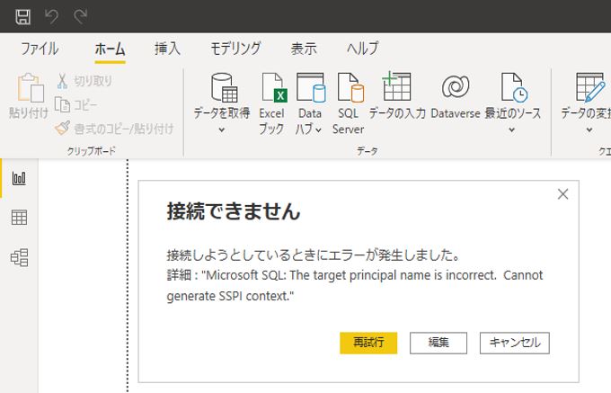 Power BI Desktopからデータソースへの接続で「The target principal name is incorrect. Cannot generate SSPI context.」が出た時の対処について