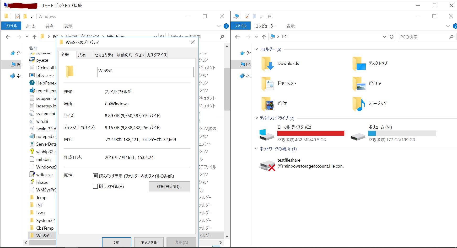 サーバでディスク容量が減っていく事象(CドライブのWinSxS)