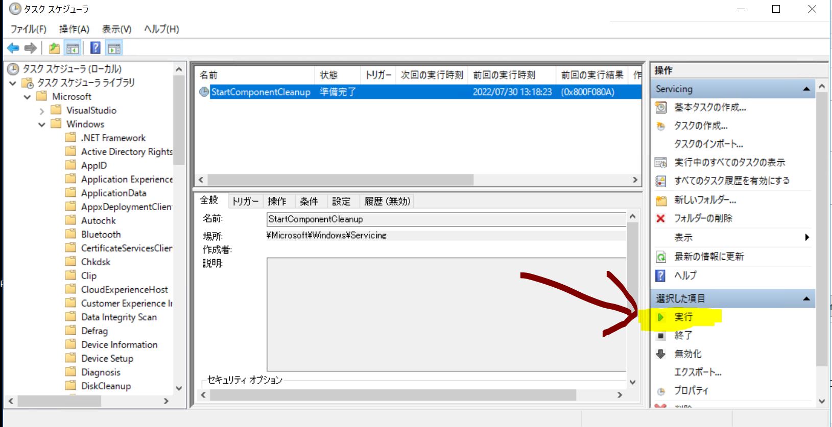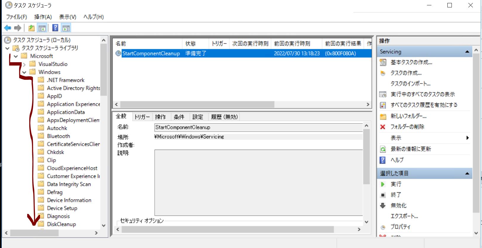 ・②「Library\Microsoft\Windows\Servicing\StartComponentCleanup」と辿る