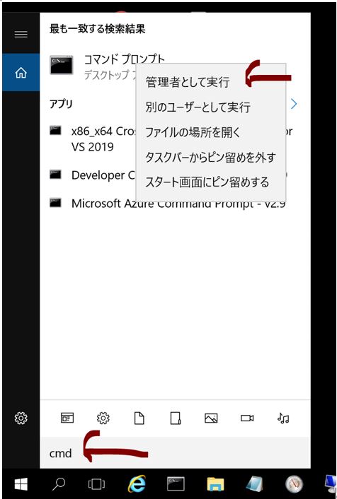 ・①cmdを開きます。