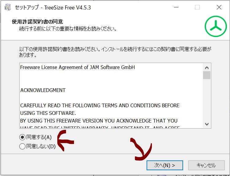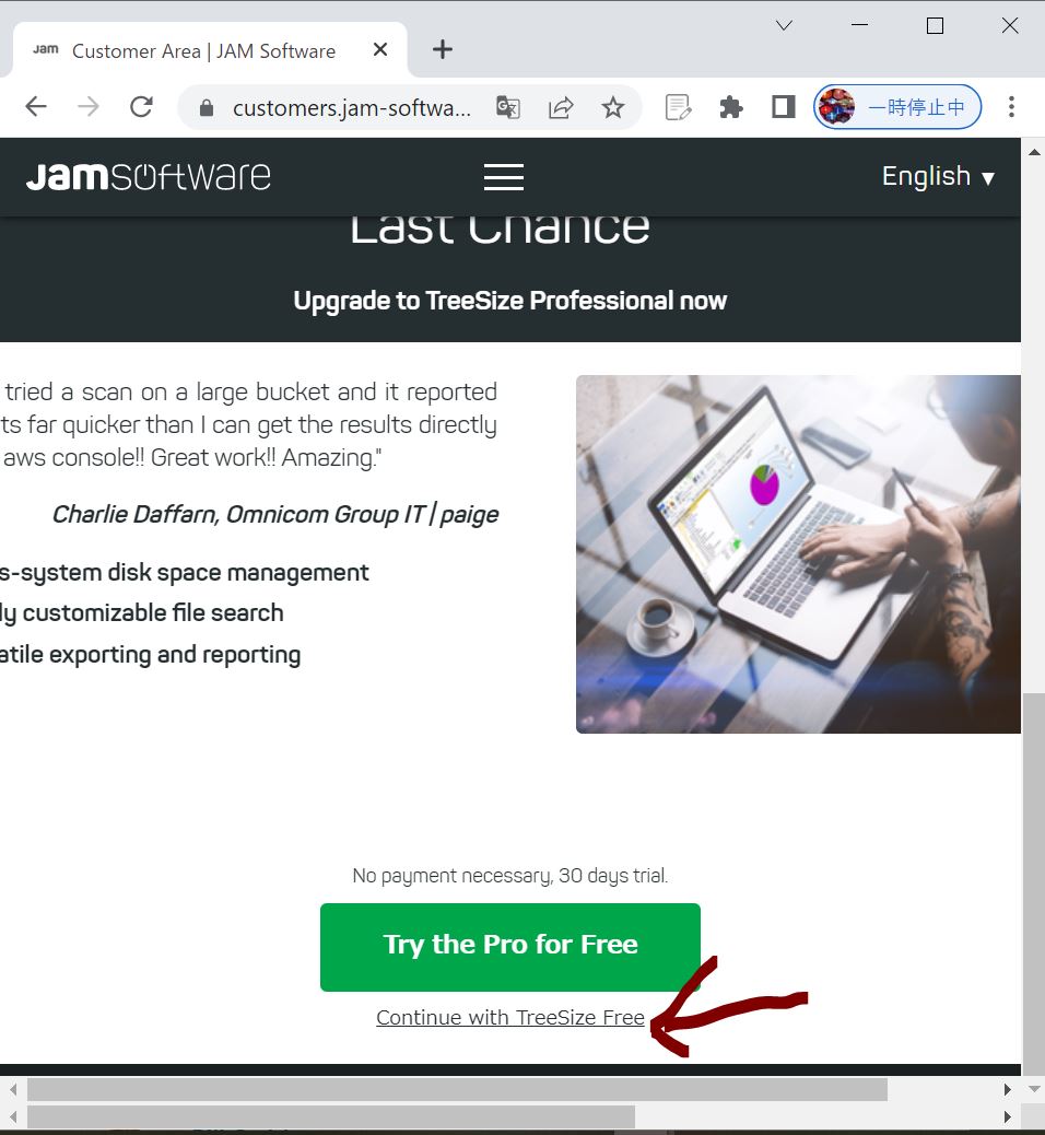 ・④「Continue with TreeSize Free」